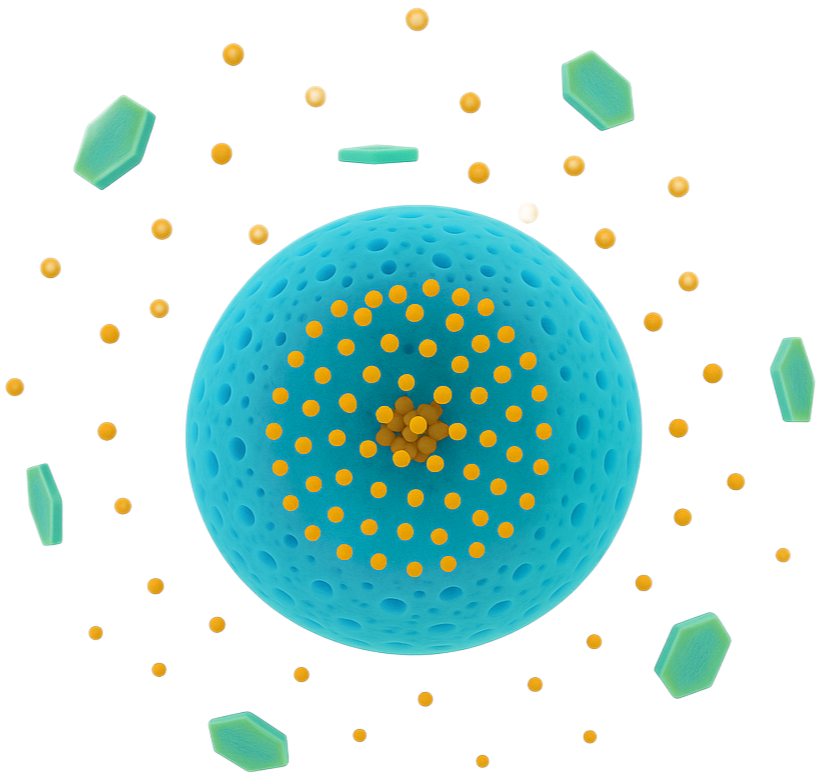 The Alnair Lactate-reactive Nanoparticle (ALN) is composed of a Mesoporous Silica Nanoparticle (MSN) packed with a benefit agent covered by our proprietary lactate-reactive cap. The ALN is then capable of selectively releasing the benefit agent in the lactate-rich Tumor Micro Environment (TME). While many companies have failed to target the Warburg Effect via surrogate biomarkers, like pH-sensitive linkers, Alnair has become the first company to successfully target lactate itself.